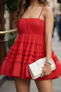 Step into instant elegance with this stunning red mini dress designed to make you feel confident, feminine, and unforgettable. With its delicate straps, flowy tiered ruffles, and flattering silhouette, this dress is made for women who love effortless glamour and standout style.