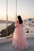 Beautiful Off Shoulder Tulle Maxi Dress Baby Pink