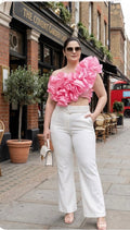 A: The Blush Baby Ruffled Top is crafted from a soft, breathable fabric, perfect for keeping you comfortable in warm Indian weather.