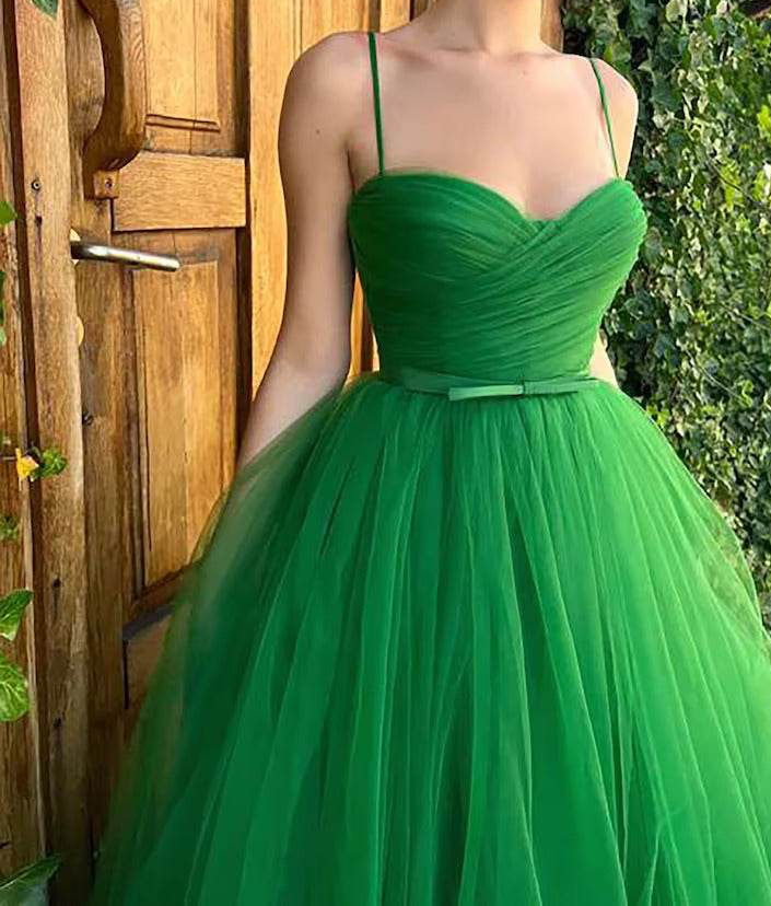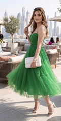 Elevate your evening attire with the Sweetheart Neck Tulle Maxi Dress in emerald green — a timeless choice that captures romance and sophistication in every layer.