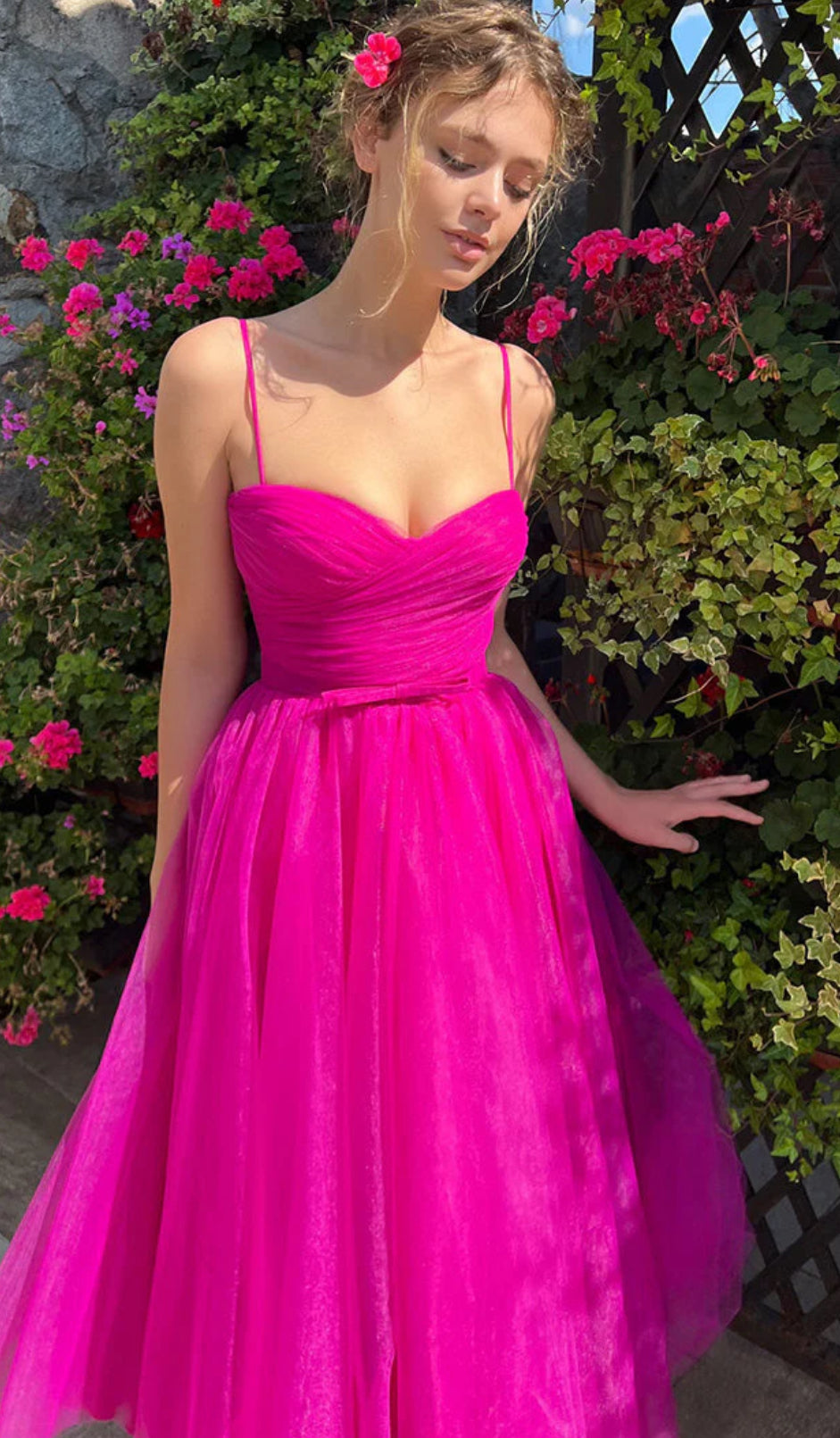 Sweetheart Neck Tulle Gown - Fuchsia Pink
