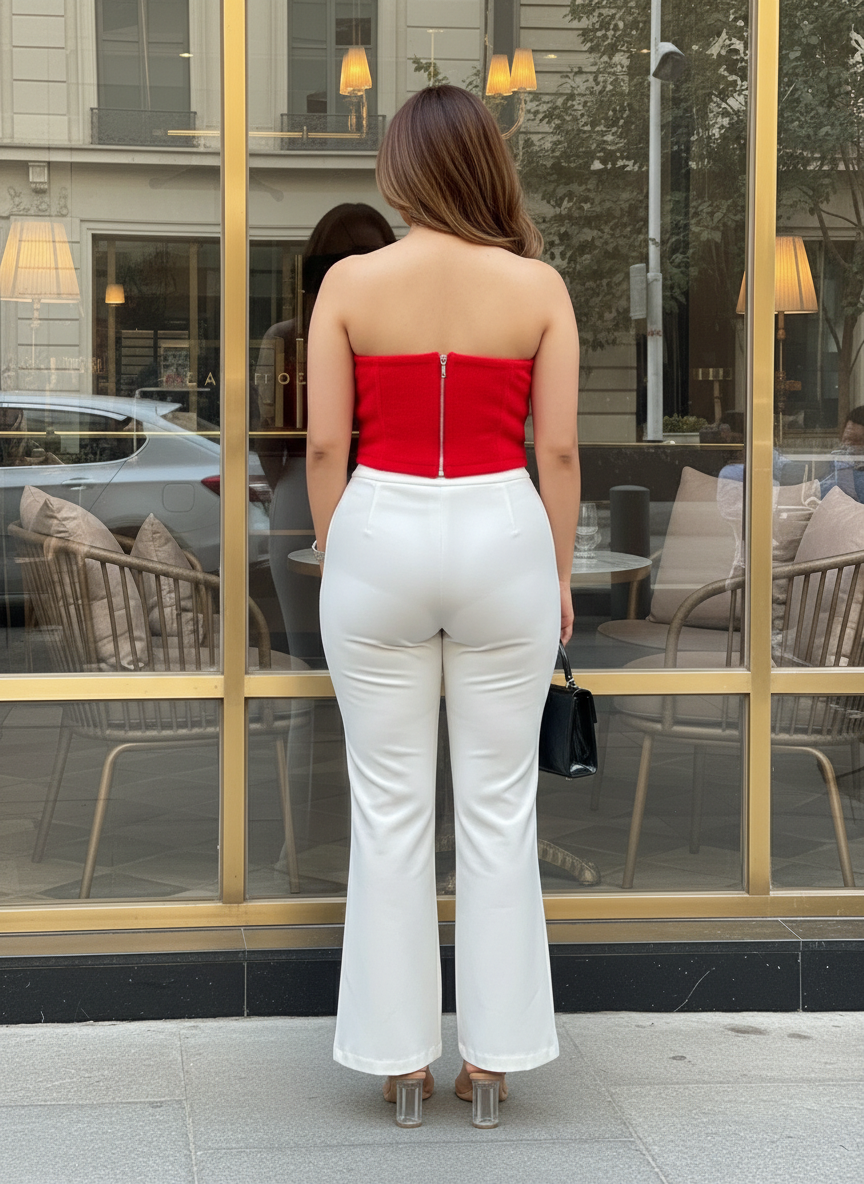 Elegant red strapless top for women designed for bold, statement styling
