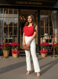 Pairs effortlessly with white trousers, skirts, or tailored pants for an ultra-rich outfit