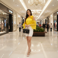 Switch, change, and explore your new look in this yellow cold shoulder top. With the ruffled sleeves at the end, it gives a perfect day time- date look. For all the ladies looking for a cute yet elegant look for the afternoon, this top is for you. Made with organza, this new trendsetter is all you need in your wardrobe.